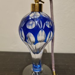 Vintage Parfymflaska i Koboltblått Glas, cut to clear.