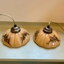Två lampskärmar I glas till fönsterlampor.