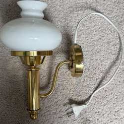 Vägglampa i mässing med vit lampskärm