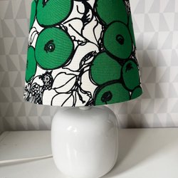 Nytillverkat lampskärm av retro tyg design Viola Gråsten Äppelkriget