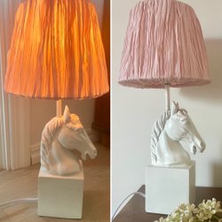 44 cm Bordslampa med hästhuvud vitt rosa