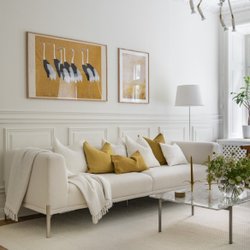 Vit soffa med vit kuddar