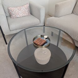 Runt soffbord med glasskiva