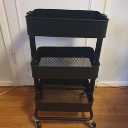 Rullvagn med tre hyllor i svart