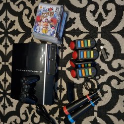 Playstation 3 med 3 handkontroller och 8 spel