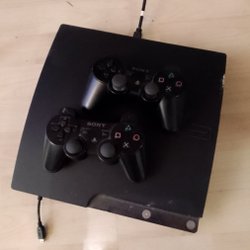 Playstation 3, 2 handkontroller, lite defekt, spel på hårddisken