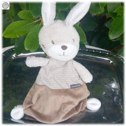 Charmig snuttefilt kanin brun med vacker vit ram märkt diinglisar Fint skick