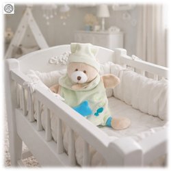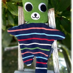 Underbar Libero snuttefilt med kaninhuvud i ljusgröna nyanser i tyget Så fin