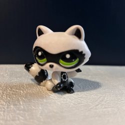 LPS Littlest Pet Shop #1591 Svartvit Tvättbjörn Grön Ögon