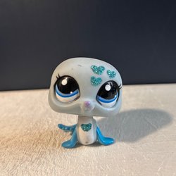 LPS Littlest Pet Shop Säl Grå Blå Glitterhjärtan