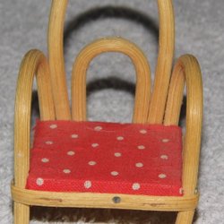 Miniatyrstol i rotting med rödprickig dyna - till dockskåpet