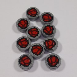 10st Bitar Platta Runda 1x1 - Flat Silver - Dark Red Bloodstone tryck - Lego