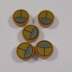 5st Bitar Platta Runda 1x1 - Pearl Gold - Gold Scarab of Ammit tryck - Lego