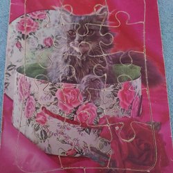 Pussel 50-talTrä Katt i Blomsterask 15 bitar Mått: 18,5 cm x 24,5 cm