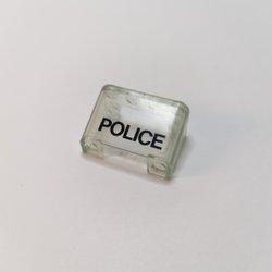 Lego - tryck - km - windscreen - 2x4x2 - part 4284pb01 - police - trans clear