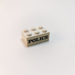 Lego - tryck - brick - 2x3 - part 3002pb01 - police - vit