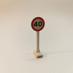 Lego - tillbehör - vägskylt - 40 upphör - part 14pb02 - vit