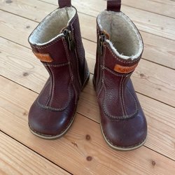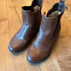 Bruna vinterkängor, i brunt skinn, för barn, strl 31. Bra skick!