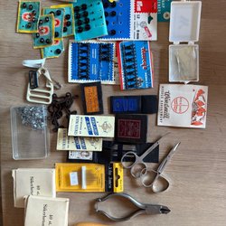 Sytillbehör sömnad knappar tofsar stuv dragkedja resår vintage retro 70-tal