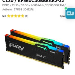 Kingston Fury Beast RGB 32GB (2x16GB) 6000MHz DDR5 CL30 OÖPPNADD