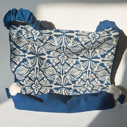 Indigo-färgad axelremsväska med lock och invändig magnetstängning