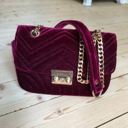 Vinröd väska i sammet med guldkedja