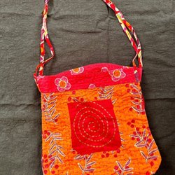 Gudrun Sjödén unik, broderad, orange väska i ekobomull