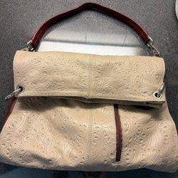 Beige handväska / äkta läder