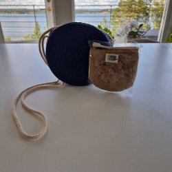 Blå, beige väska