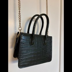 Perfekt väska, populärt croco-präglad+plånbok. Parant mörkgrön skinn läder