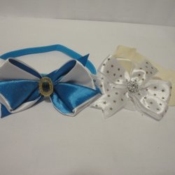 2 st Vacker Hårband i Blå/vit färg med dubbel rosett