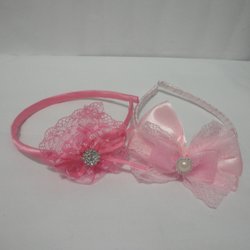 2 st Vacker Hårdiadem till barn med blomma i spets,pink