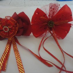 2 st Vacker Hårsnodd med Stor Dubbelrosett ,röd
