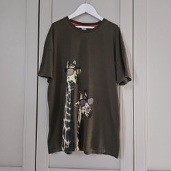 Lindex grön t-shirt med giraffer, storlek 170