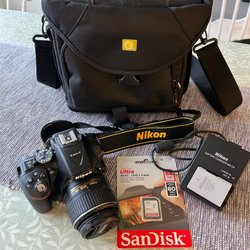 Nikon D50 med 3 st Nikon-objektiv, väska, SD-kort m.m.