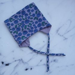Bomullsmössa i dubbeltrikå med blåbär. Ca 1-6 månader