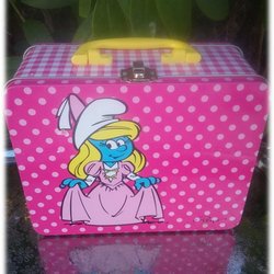Smurfina Smur plåtburk plåtväska förvaring på handtag stämplad Peyo Fint skick