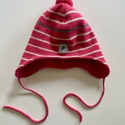 Randig mössa POP stl 44 46 Polarn och Pyret ull luva knytband