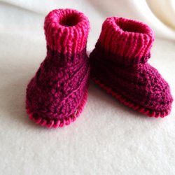 Tofflor, 6-9 mån handstickad i ull-akrylblandning,
