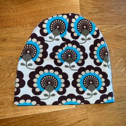 Blommig mössa med retromotiv från me&I i, storlek 96/98