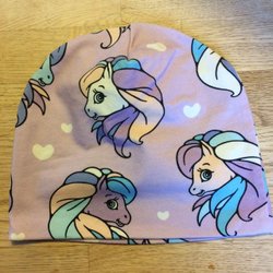 NY! söt mössa i dubbel trikå barnmössa trikåmössa 4 mån - 1 år nysydd häst ponny