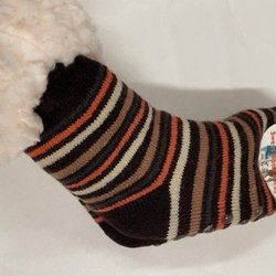 Varma randiga sockor med teddypäls och halkskydd / Stl 32-35