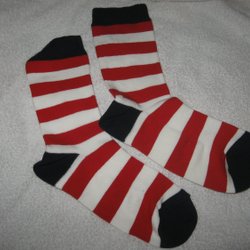 1 PAR STRUMPOR RÖD/VIT RANDIGA 33/36 NYA OANVÄNDA