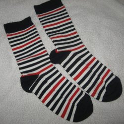 1 PAR STRUMPOR VIT/MARINBLÅ/RÖD RANDIGA 33/36 NYA OANVÄNDA