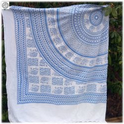 Vacker väggbonad el. duk blå mandala mönster elefanter och fransar
