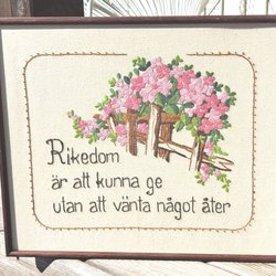 Tavla med Broderi, Vintage, Inramad i fint skick