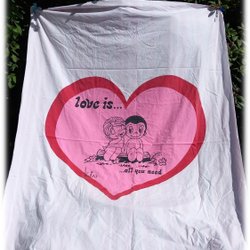 Påslakan med texten Love is all you need bild med signatur Retro Vintage