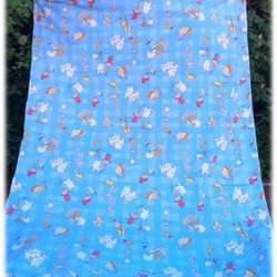 Underbart påslakan i flanell blå blommigt mot vit bakgrund vintage Fint skick