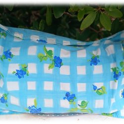 Vacker blommigt rutad prydnadskudde elelr örngott med vingar turkos Extra Large