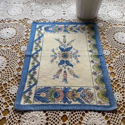 Handbroderad oval liten duk